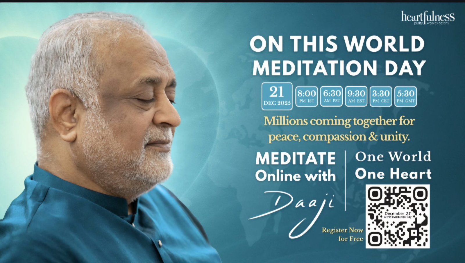 To honour the day, the Heartfulness Institute and Shri Ram Chandra Mission invite you to a global online meditation session on: