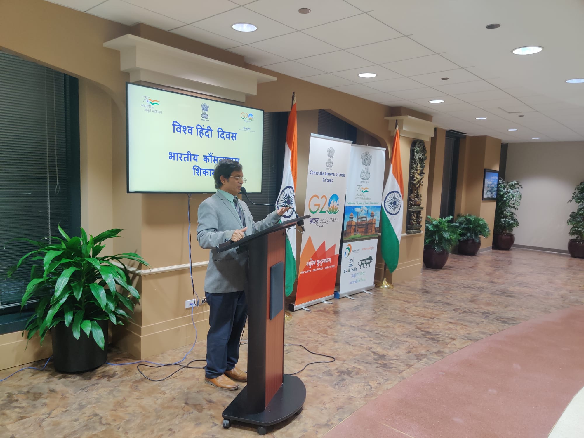 भारत के प्रधान कौंसुल ने अपने भाषण में यू.एस. मिडवेस्ट के विभिन्न विश्वविद्यालयों में हिंदी संकायों की भूमिका की सराहना की। उन्होंने कहा कि अपने आगमन के बाद से बहुत कम समय में उन्होंने अंतर्राष्ट्रीय हिंदी समिति-इंडिआना अध्याय, हिंदी क्लब ऑफ इलिनोइस, और हिंदी यू.एस.-सेंट लुइस अध्याय के प्रतिनिधियों से मुलाकात की है।बाल विहार-शिकागो, हिंदी यू.एस.-सेंट लुइस अध्याय, हिंदी गुरुकुल-अरोरा, और हिंदी स्कूल ऑफ़ विस्कॉन्सिन नियमित रूप से हिंदी को बढ़ावा देने और लोकप्रिय बनाने के लिए अच्छे प्रयास कर रहे हैं।