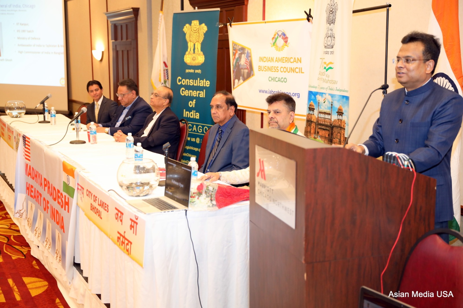 Leading community members who spoke at the event included Dr. Bharat Barai, IABC; Event Chair Ajeet Singh, Event co-chair Vinesh Virani; Dr. Sreenivas Reddy, Chair of Illinois Medical Board; leading cardiologist Dr. Vemuri S Murthy; Mr. Sunil Shah, FIA leader; Mr. Amarbir Ghoman from Hotel Marriott; and Mr Keerthi Ravoori.